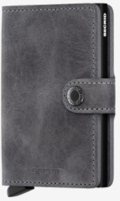 Our Vintage leather has a carefully abraded surface and a wax finish that gives a stonewashed look. The wax makes it more sensitive to scratches, making this lively leather more personal over time. Miniwallet Vintage Grey-Black is corrected-grain leather, made in Holland from European cowhide. For more information on leather characteristics, our production process or care instructions.Holds
